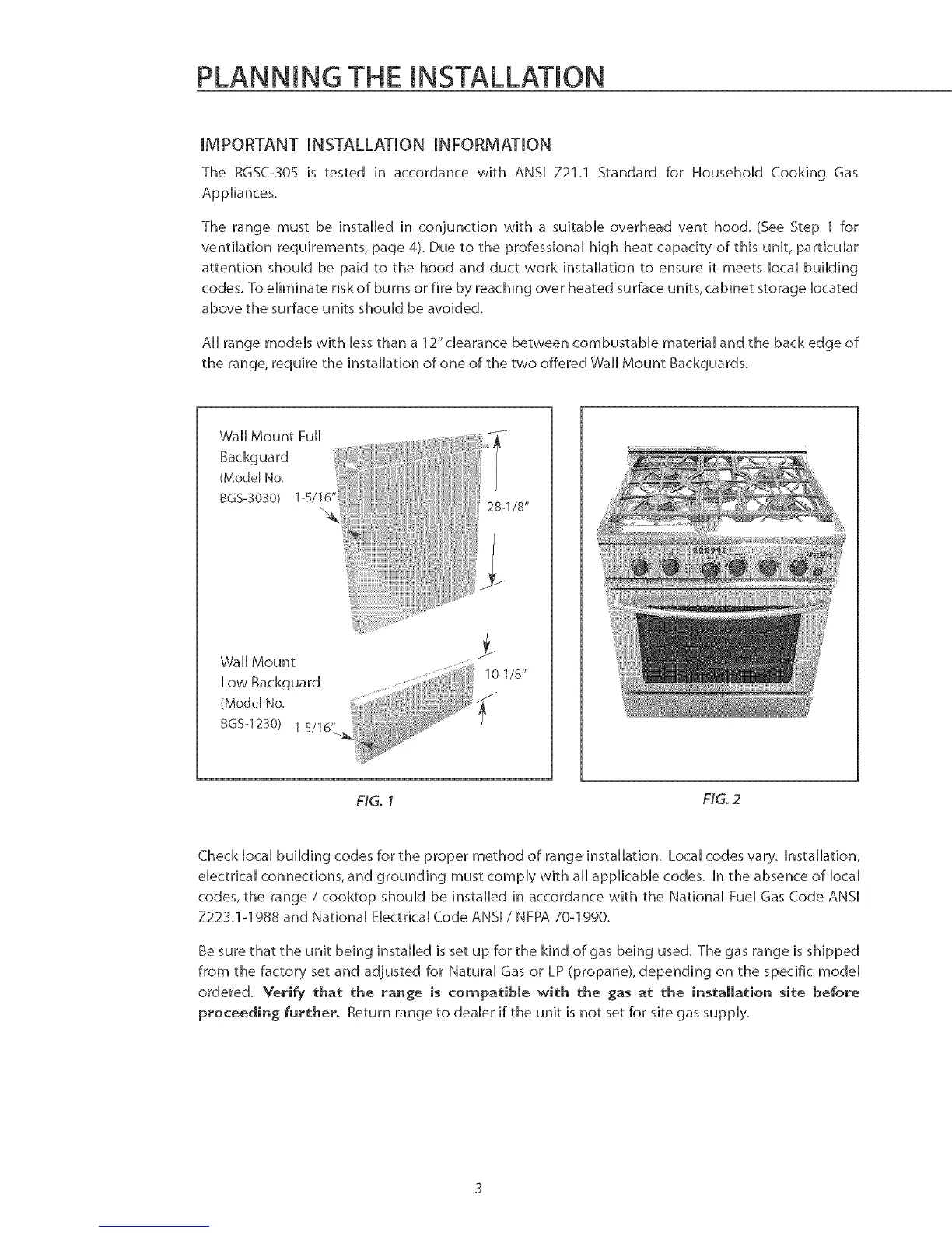 the range, require the installation of one of the two offered Wall Mount Backguards.