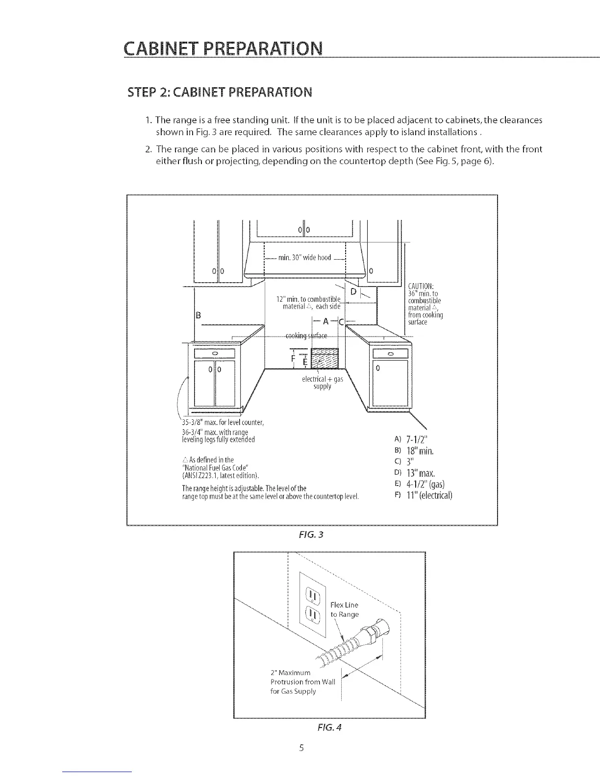 1. The range is a free standing unit. Hfthe unit is to be placed adjacent to cabinets, the clearances