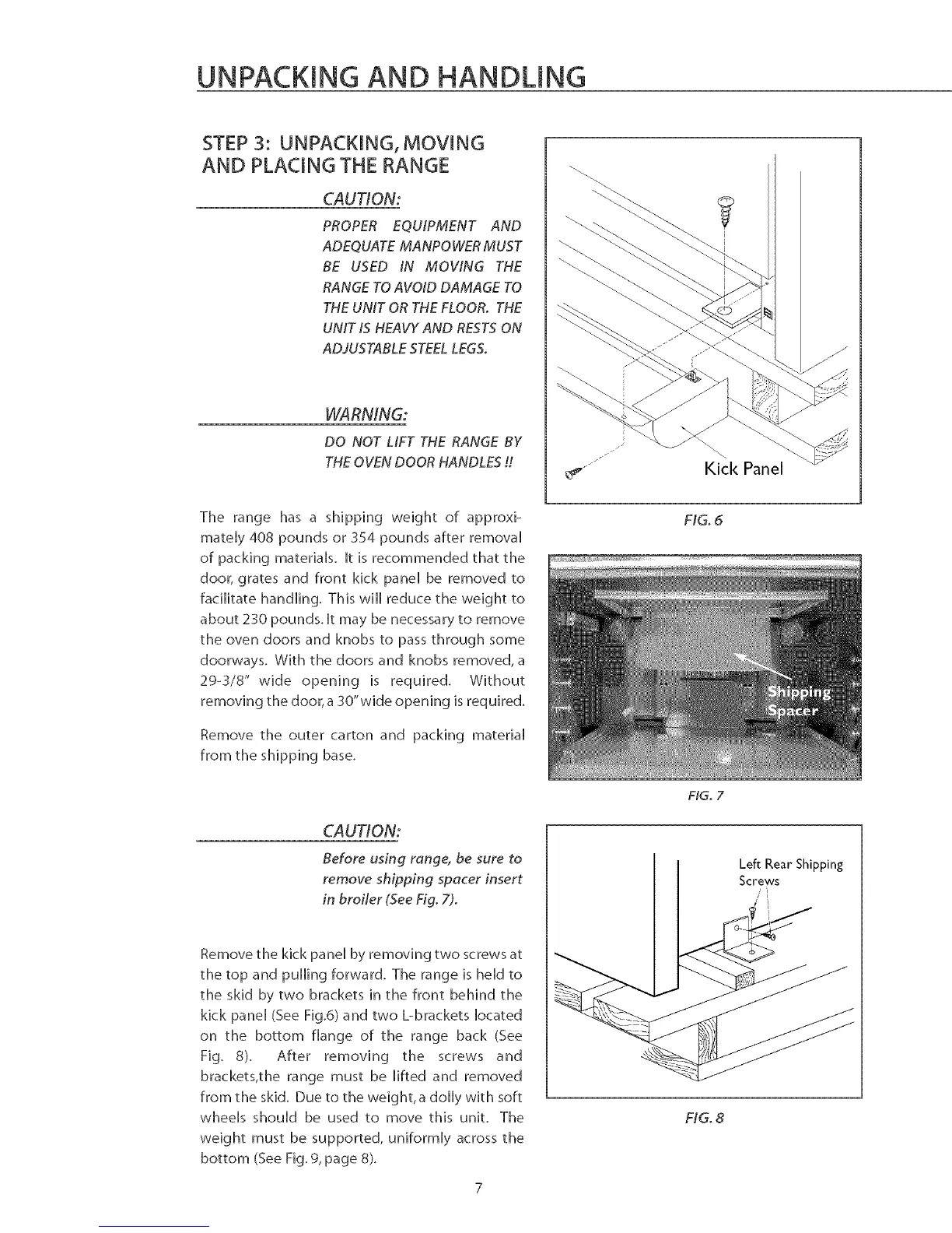 door, grates and front kick paneH be removed to