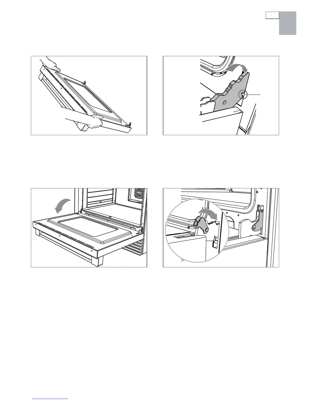 hinges, as shown, then close the door.