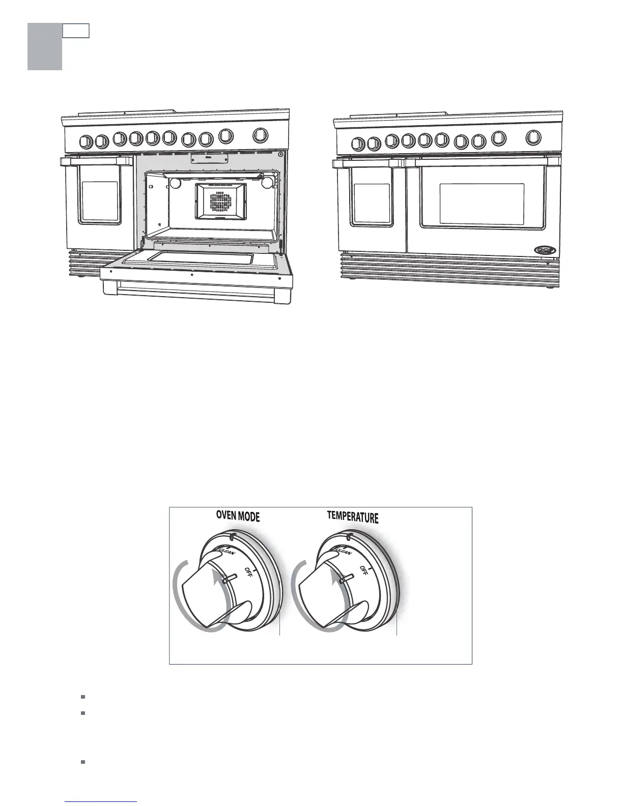 Turn the oven mode knob counterclockwise to CLEAN.