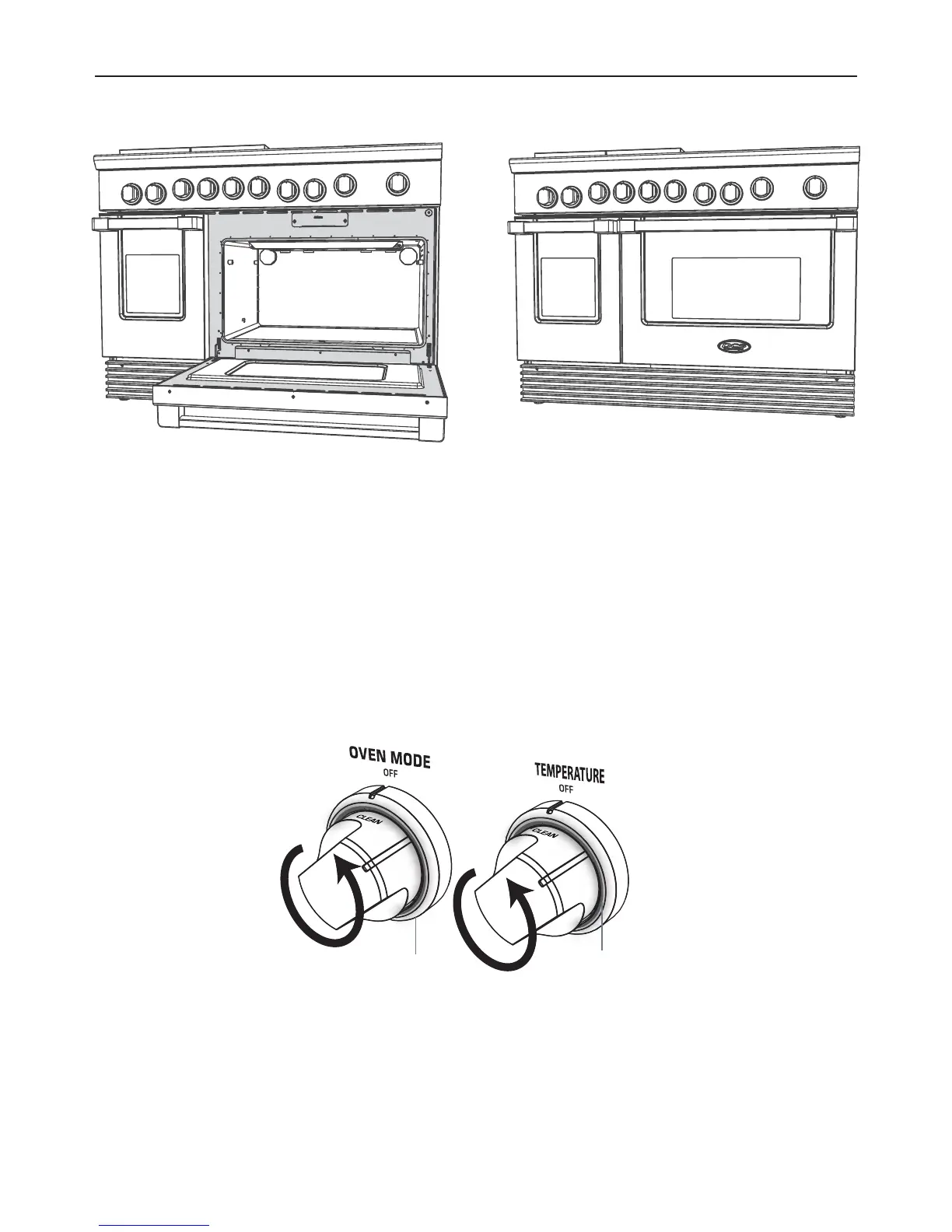 7 Turn the oven mode knob counterclockwise to CLEAN.