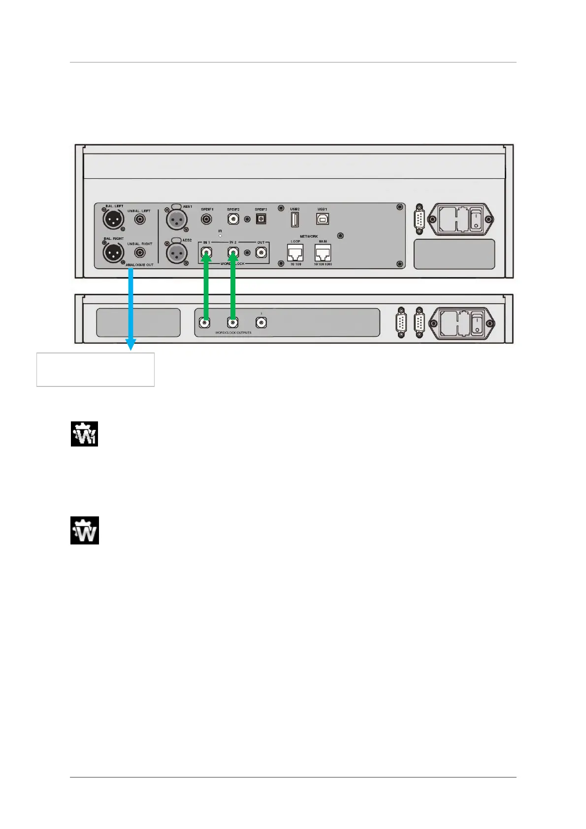 • If you are using the USB1 or USB2 inputs, lock them to the Clock in the same way as for the