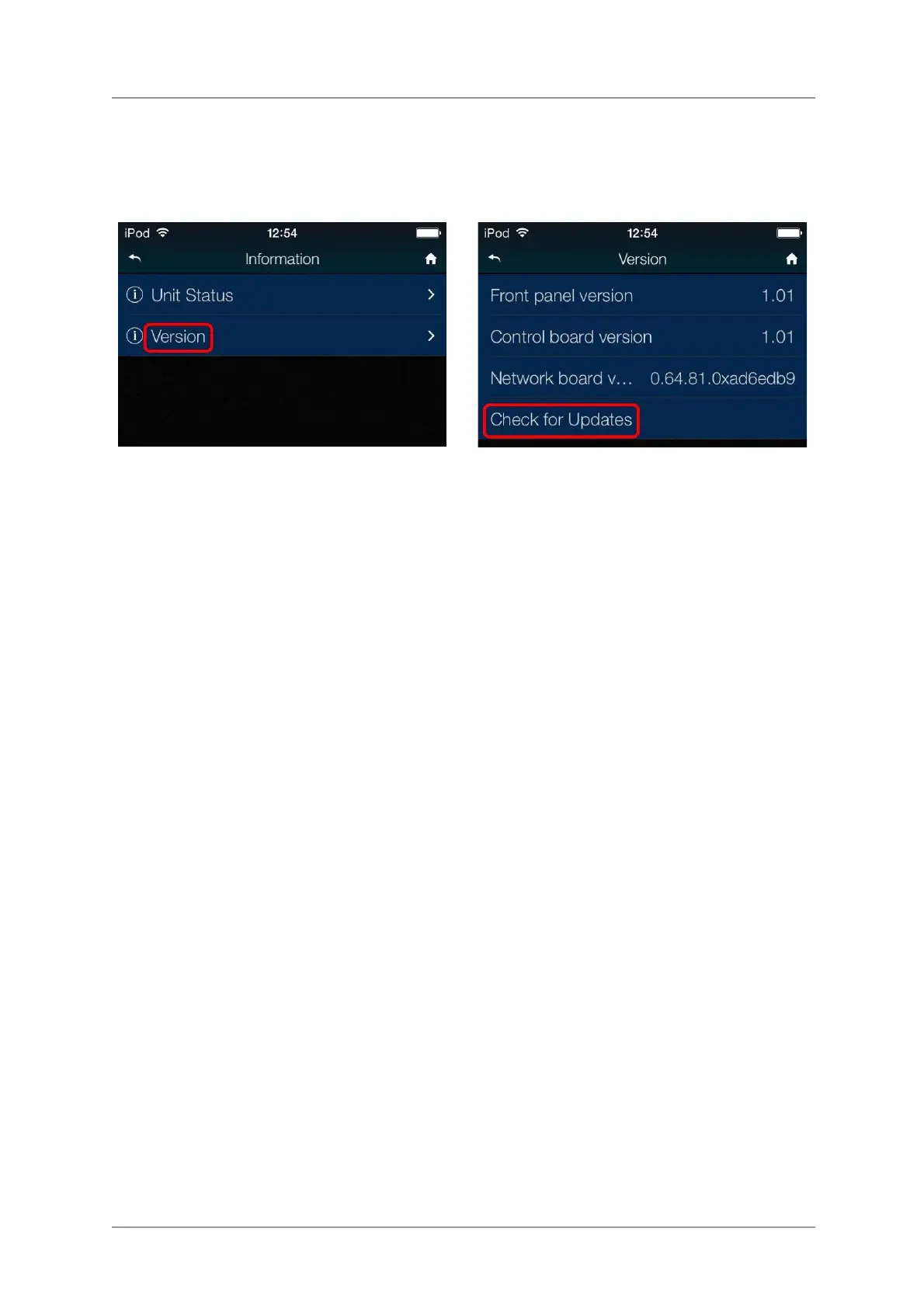 Rossini app. Tap Configuration > Information > Version > Check for Updates. If an update is