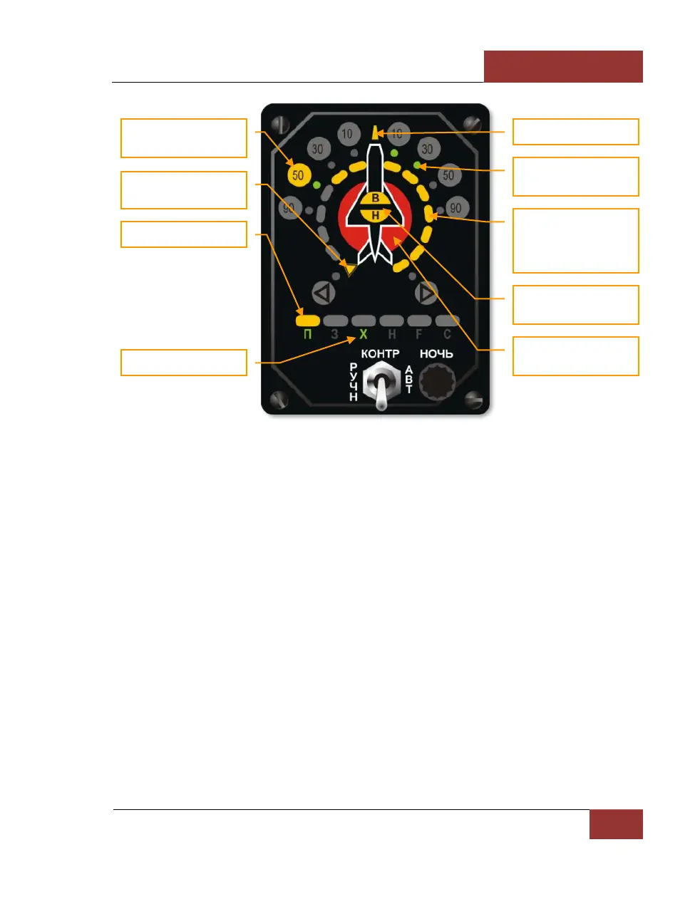 lamp. The lamp above "П" symbol, which means "interceptor", is lit. This type of threat