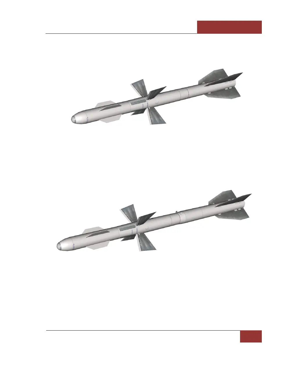 The missile’s length is 4.5 m. The maximum body diameter is 0.26 m. The wing span is 0.8 m. The