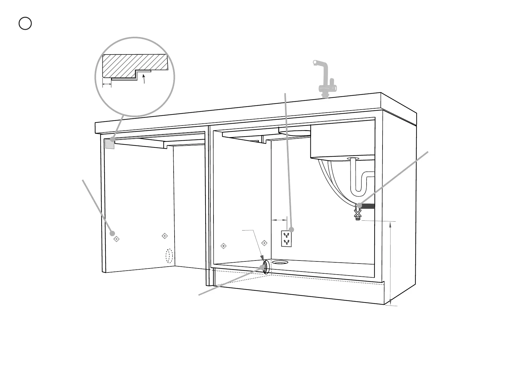 Can be located either side of dishwasher, preferably
