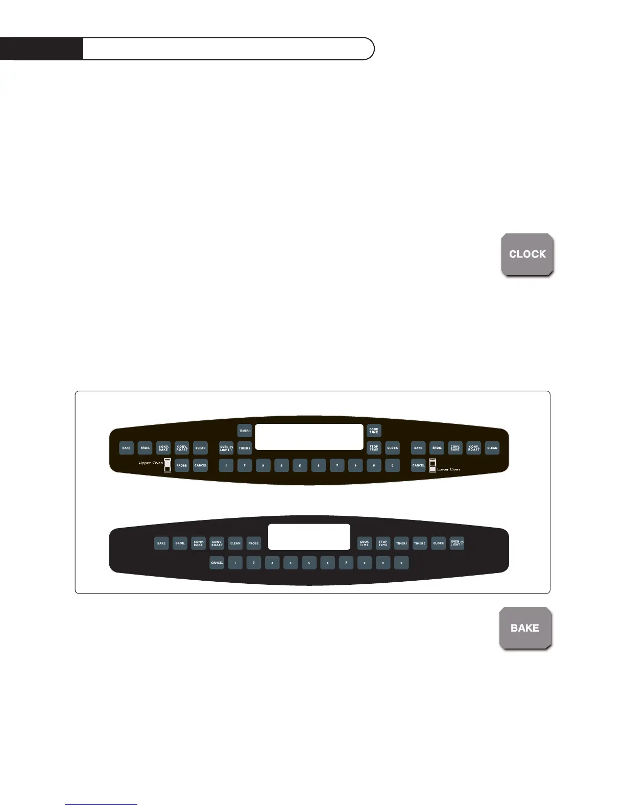 bake, timed convection roast, or clean). After a power outage the clock will blink with the time