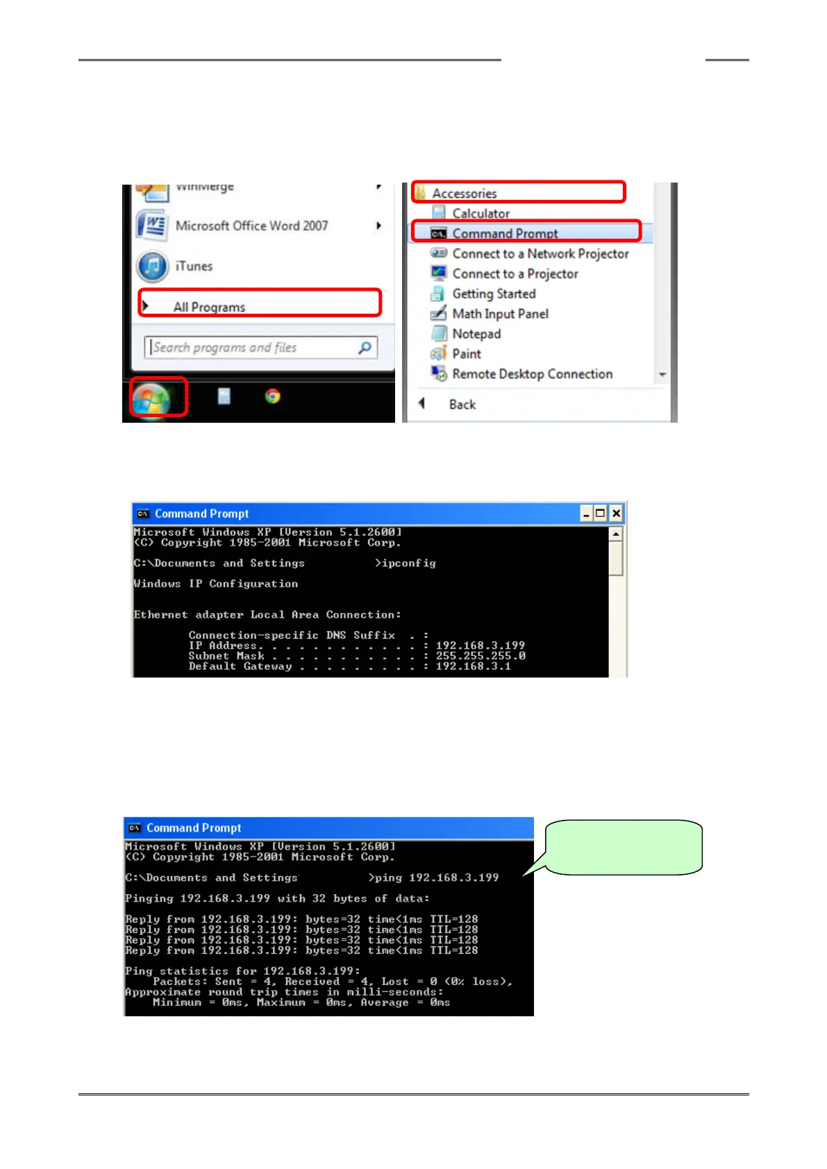 then enter “ping 192.168.3.199” or “ping 192.168.3.198.”