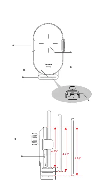 DDpai R1S - Product Overview; Clamping Arms; Wireless Charging Area; Infrared Sensor
