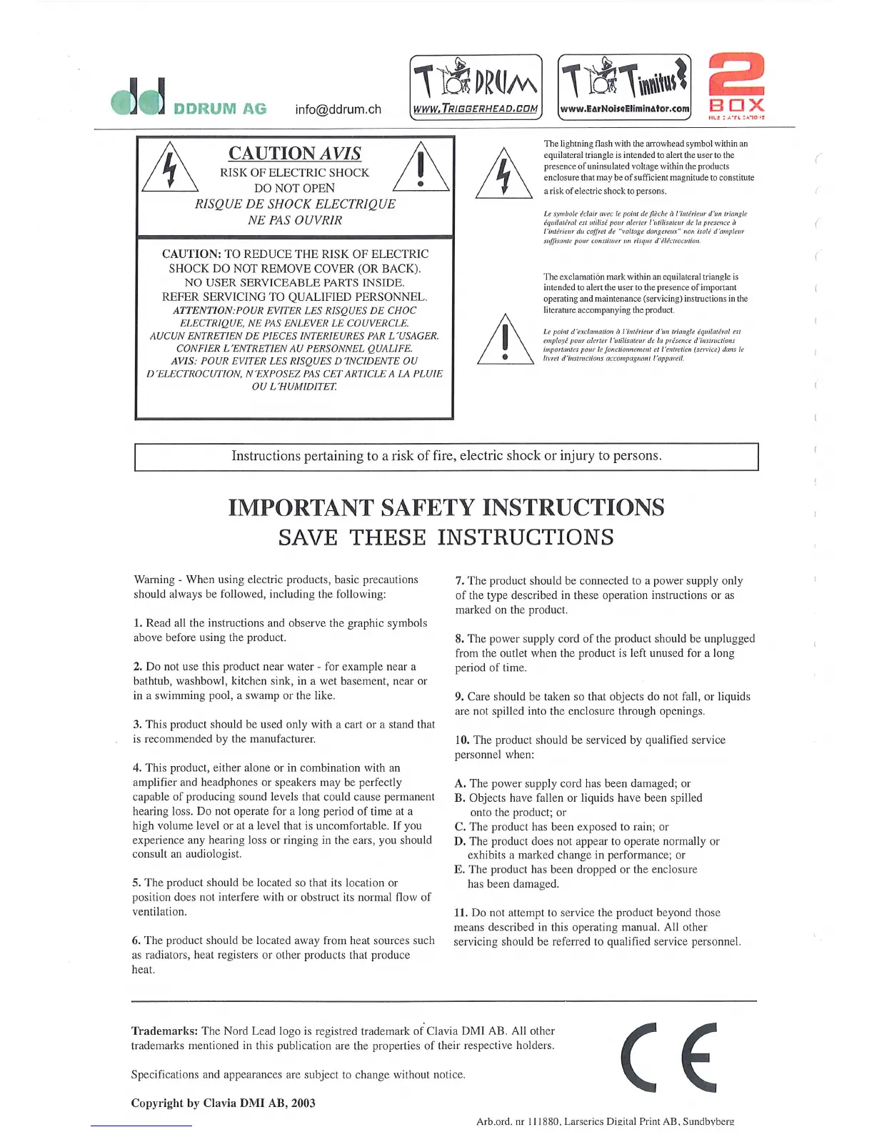 ddrum 4 - Safety Instructions