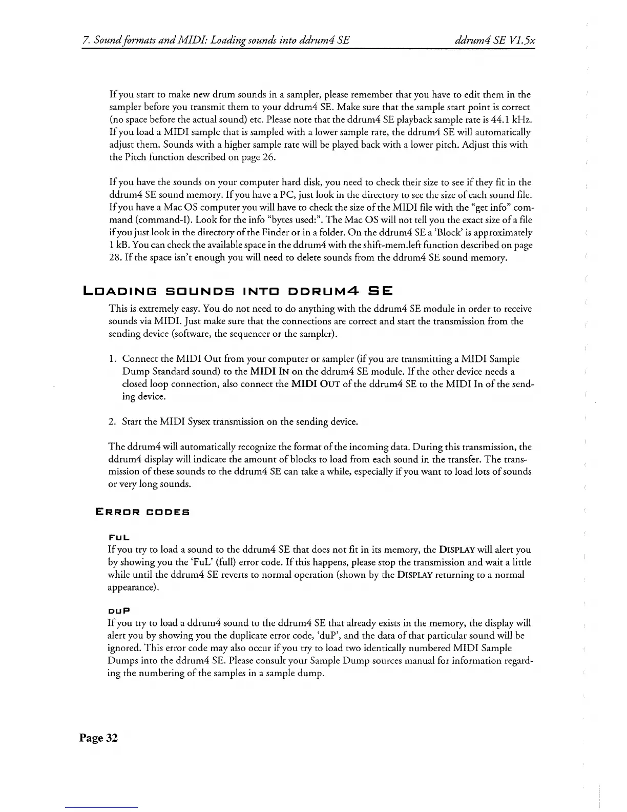 ddrum 4 - Loading Sounds into the Device; Error Codes; Ful; Dup