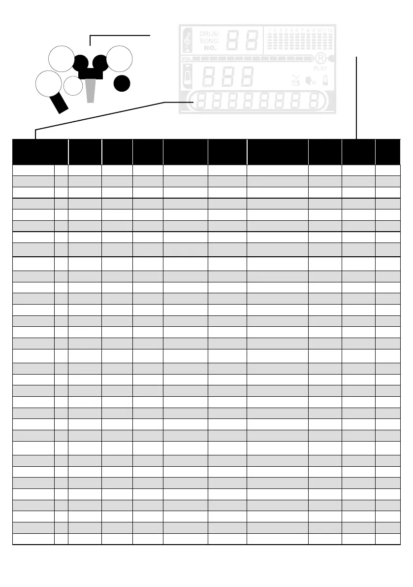 12 HI- HAT SNARE WOOD HI-MID TOM LOW TOM LOW FLOOR TOM CRASH1 RIDE1 BASS