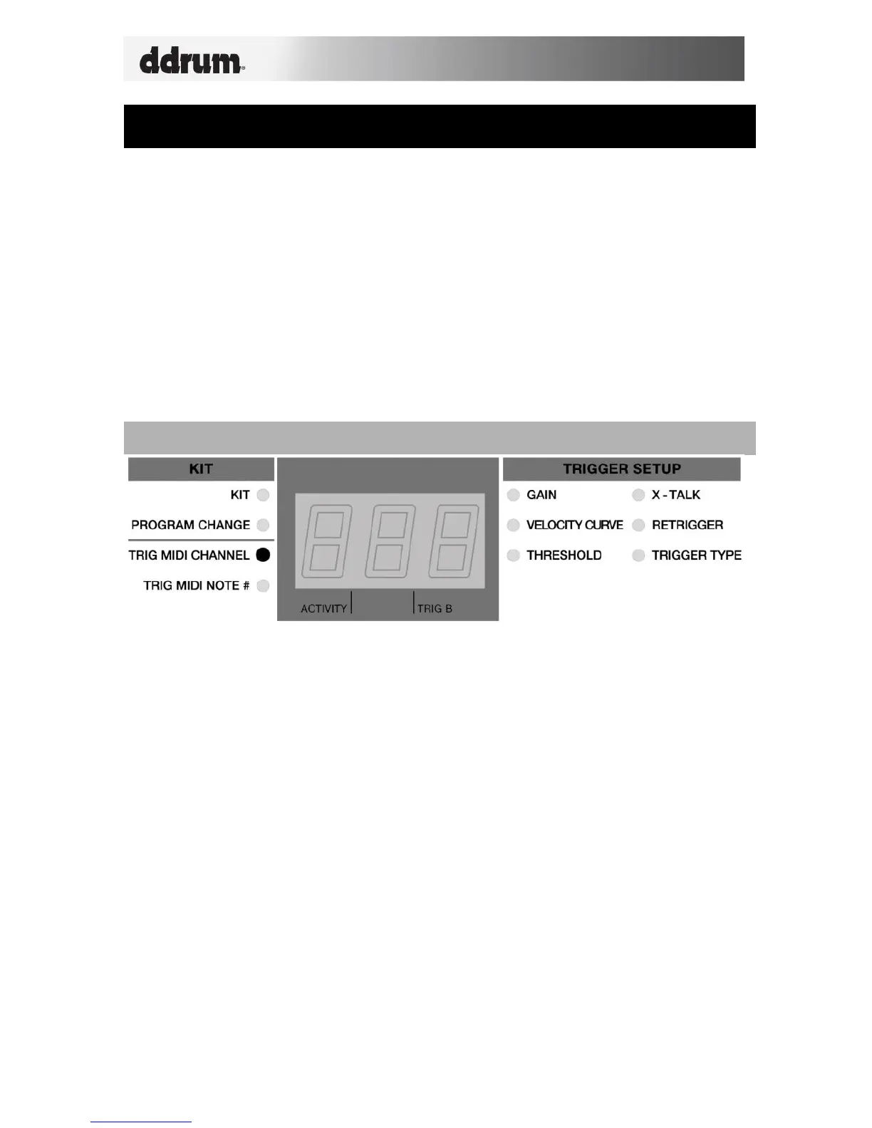 1. Use the function up/down buttons to select Trig MIDI Channel.