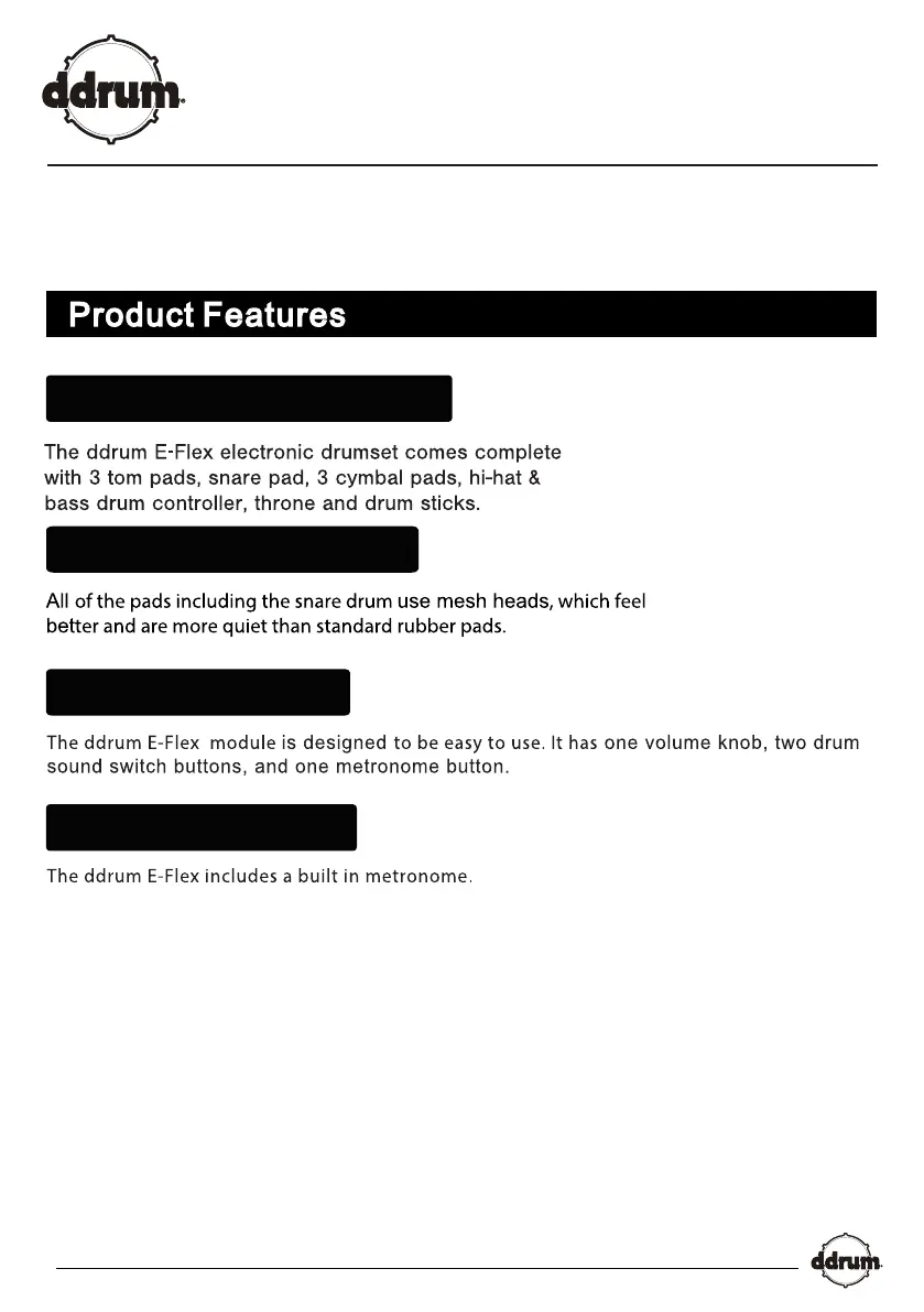 Thank you for purchasing the ddrum E-Flex Electronic Drum Set. Please