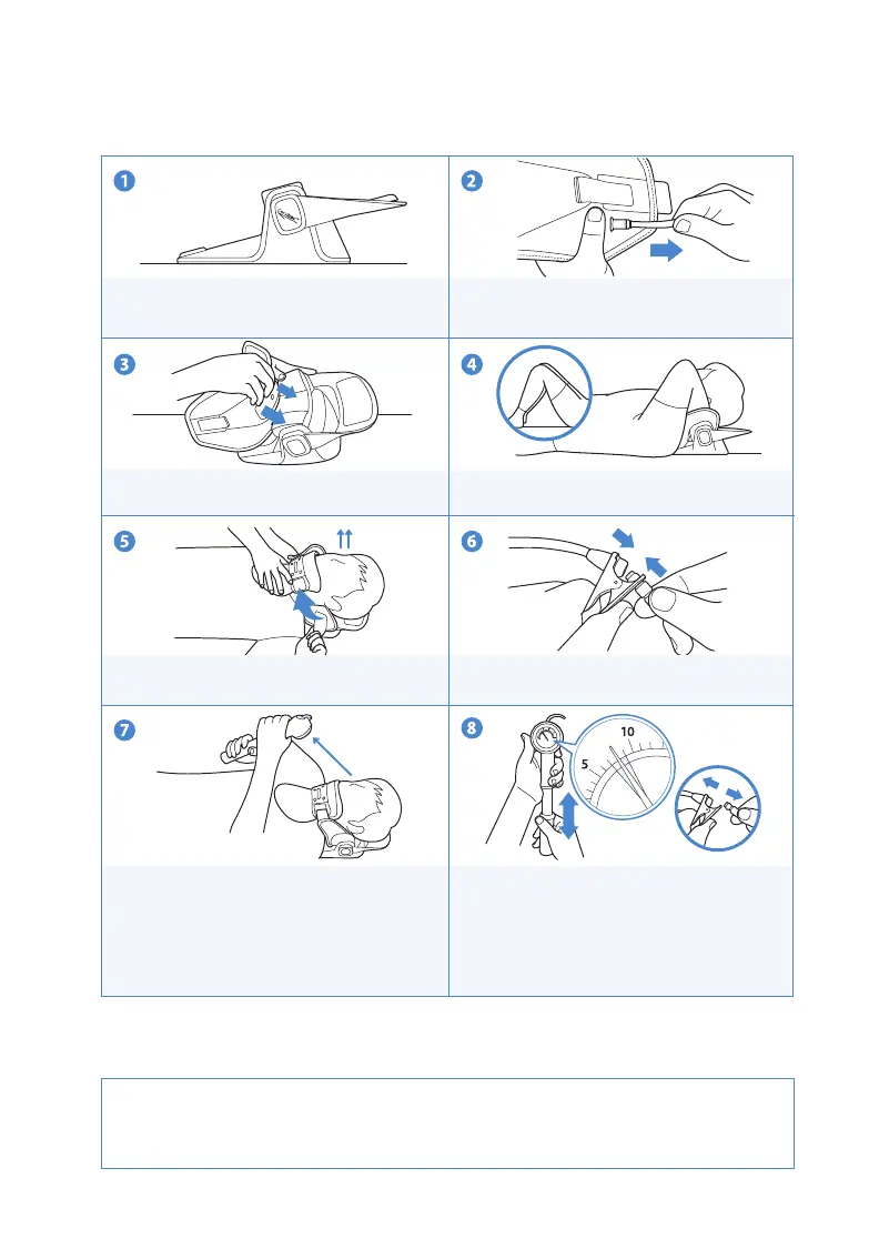 Attach the Traction Belt to the center of the Stand via Velcro. Lie down and carefully place your neck on the center of the