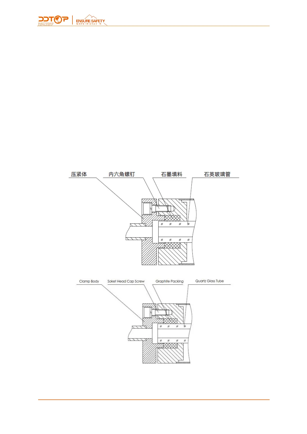 9.2.3 卸下螺钉后,依次取下压紧体、石墨填料、石英玻璃管;
