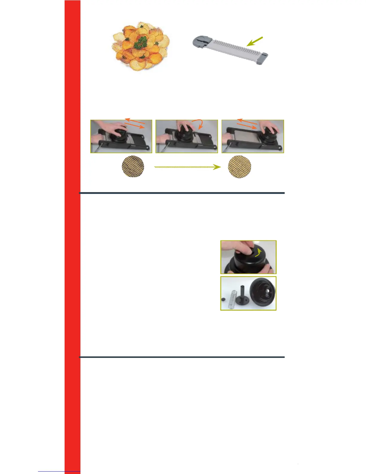 поверните толкатель примерно на 1/4 оборота (2) и снова перемещайте его к лезвию (3).