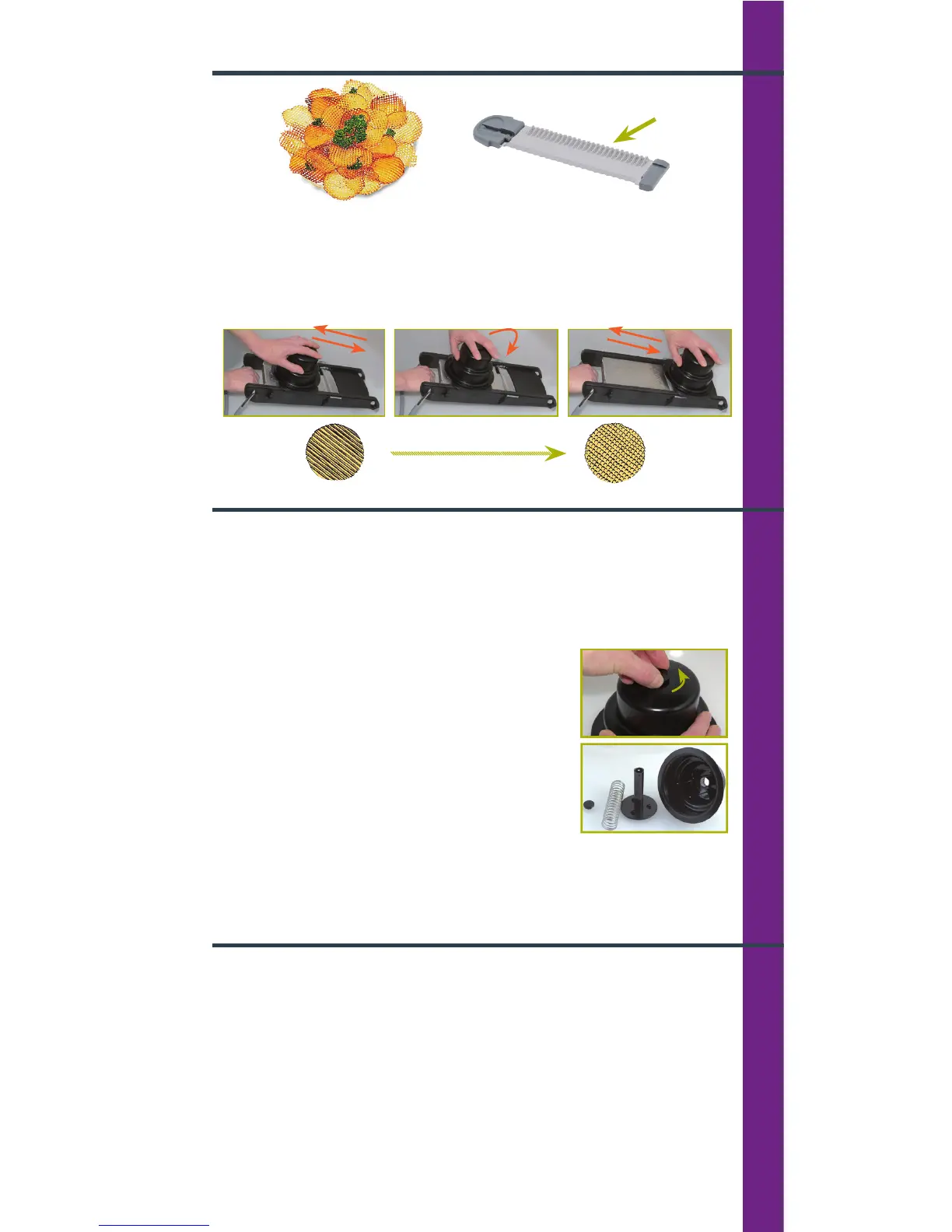 • Manipule sempre a estrutura da Mandoline e as lâminas pelas zonas previstas