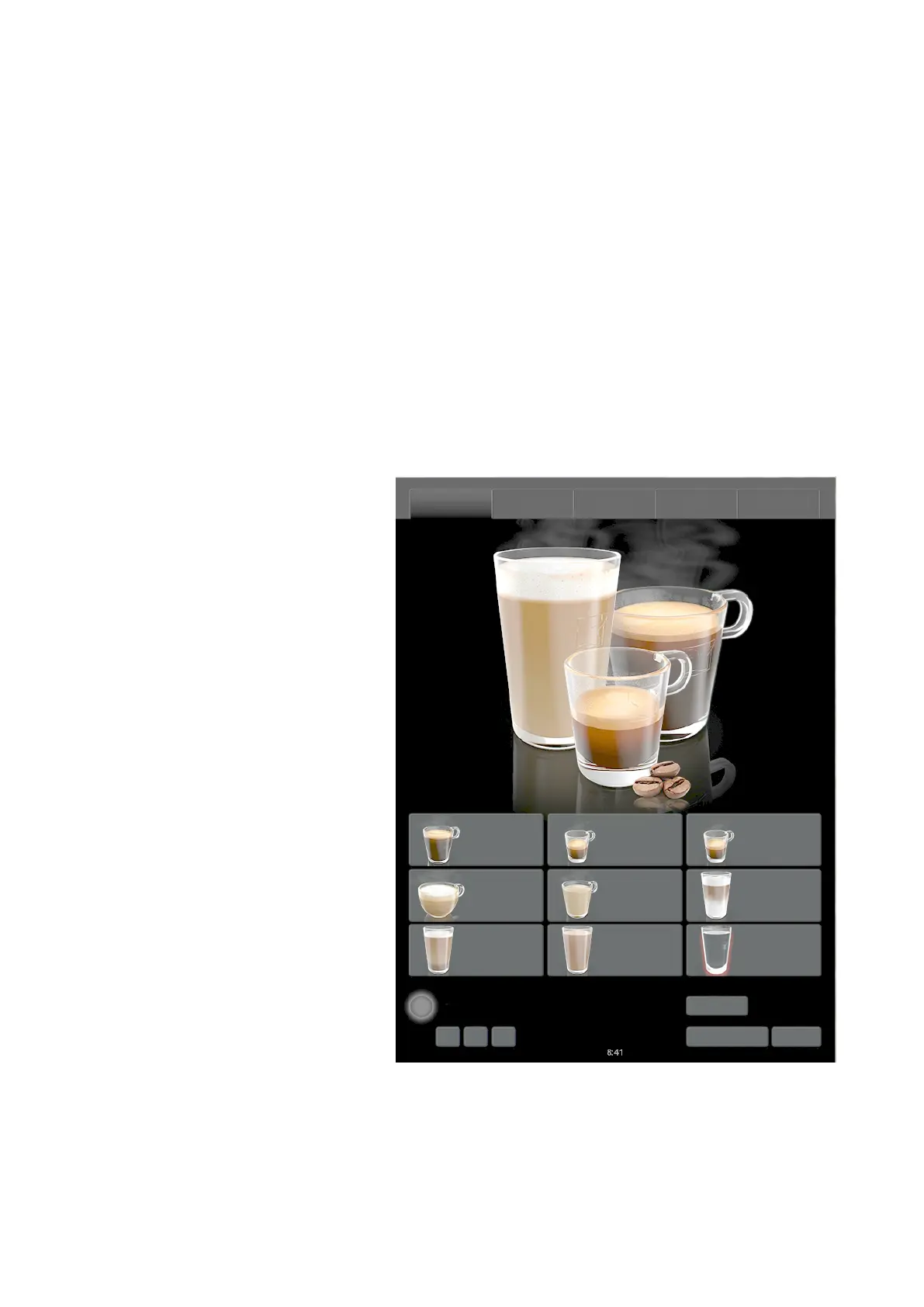 The coffee machine is operated with a touchscreen on the door.