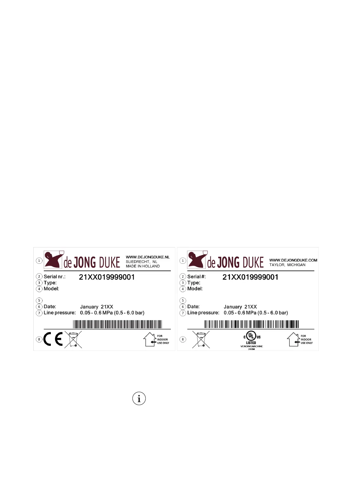 4. Model name / configuration 8. Markings for conformity, disposal and use.