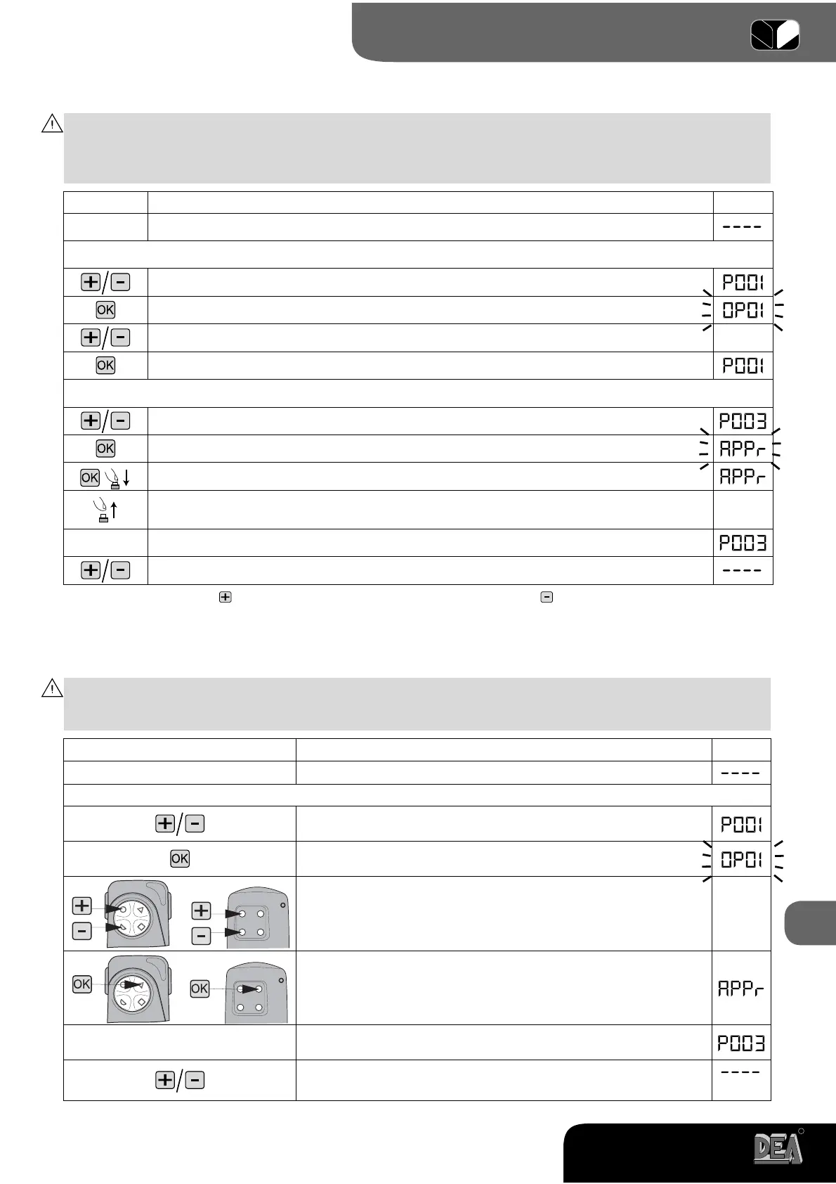 ATTENTION Pendant la phase d’apprentissage de la course des moteurs l’armoire de commande