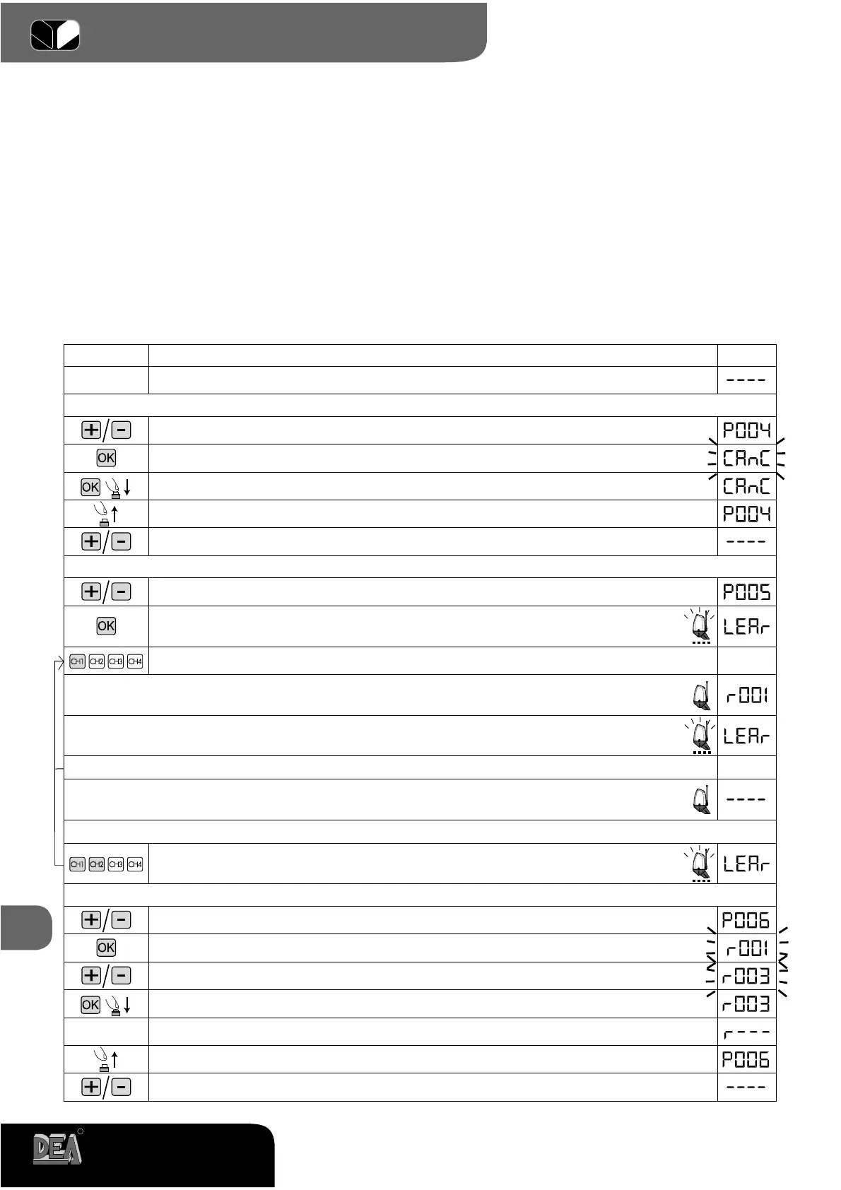 touches des radiocommandes en mémoire, activera l’entrée piétons (voir “ Attribution des canaux radio-
