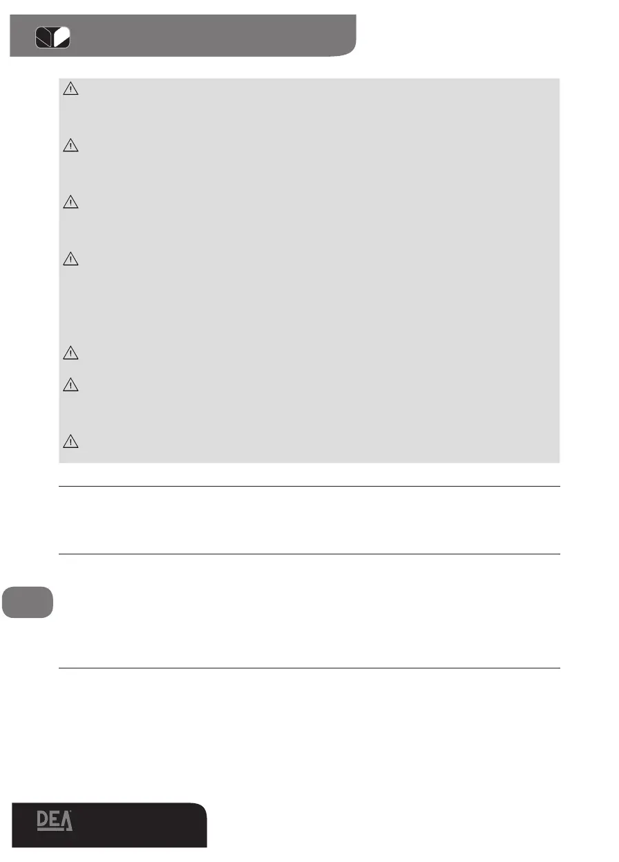 malfunzionamenti al prodotto; utilizzare sempre le parti indicate da DEA System e seguire le istruzioni