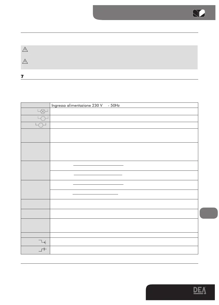 Uscita 24 V ~ alimentazione ausiliari e dispositivi di sicurezza non controllati. Da uti-