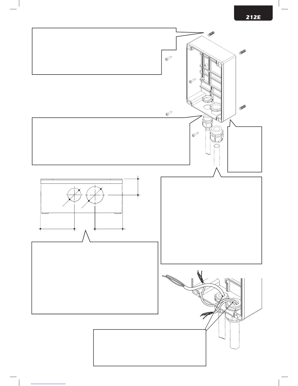 introduce tube fastening; VUE DE “A” Trous à percer au fond du boîtier