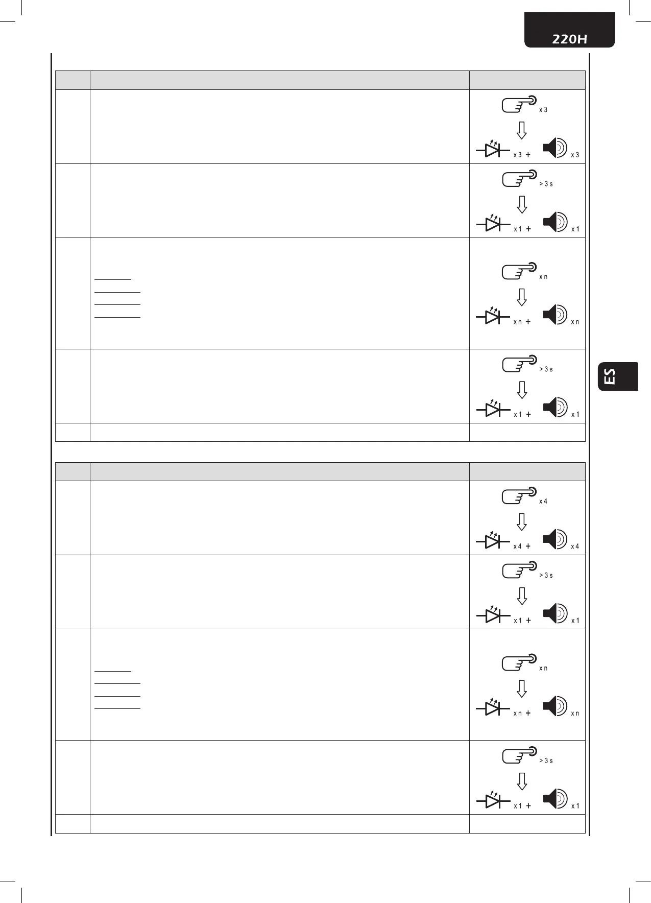 3 presiones -> Temporizada (3 parpadeos y 3 avisos acústicos)