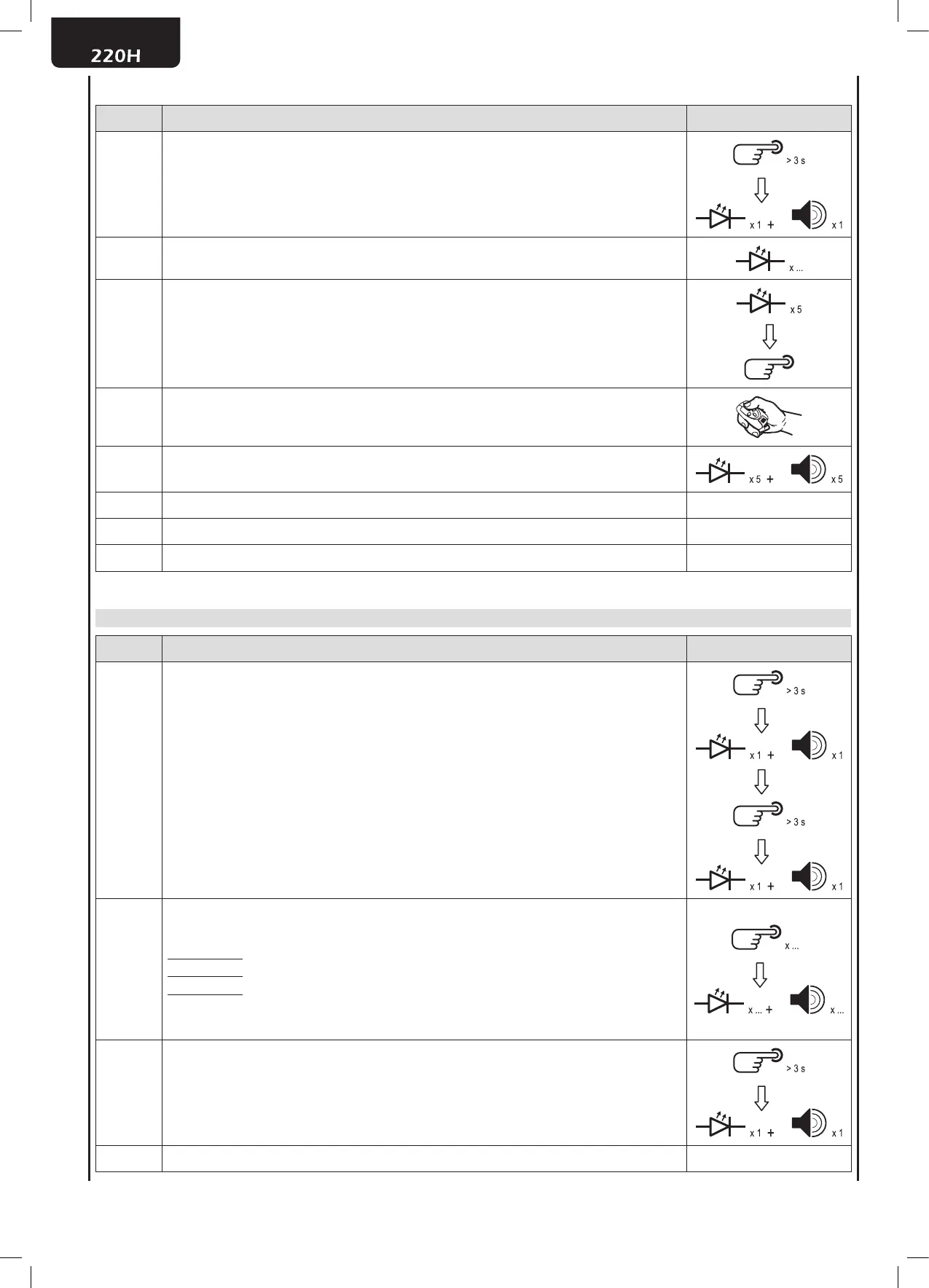 3 naciśnięcia -> powrót (troll back) trybu oświetlenia (1 mignięcie i 1 sygnał akustyczny)