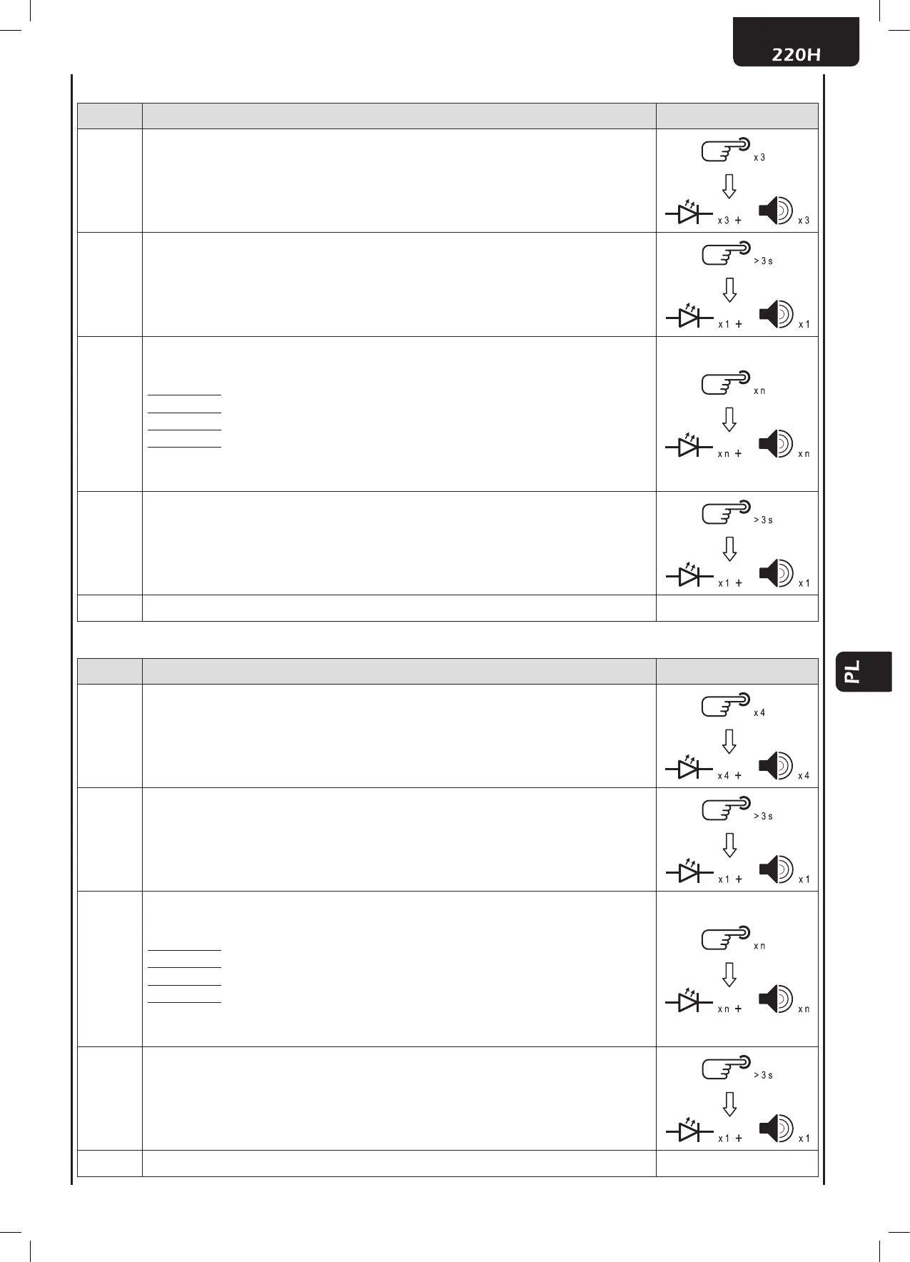 odbiornika wykona 3 mrugnięcia a brzęczyk wyda 3 sygnały dźwiękowe, co 2 sek..