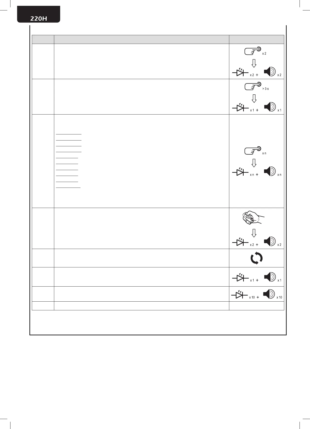 w ilości zależnej od wybranej funkcji, oraz sygnałami dźwiękowymi, w ilości uzależnionej od