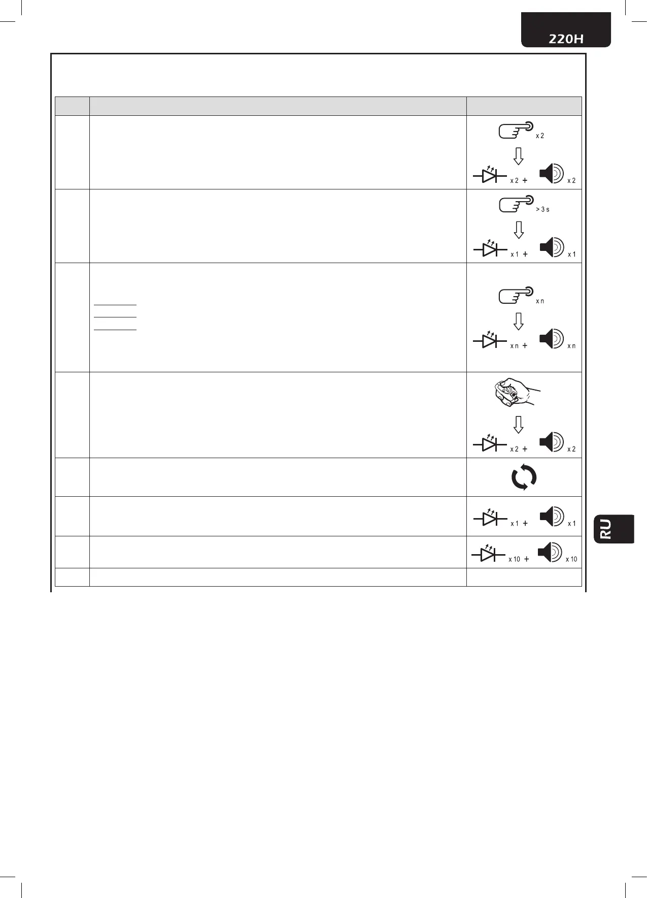3 нажатия -> возврат к выходу 1 (1 мигание и 1 звуковой сигнал)