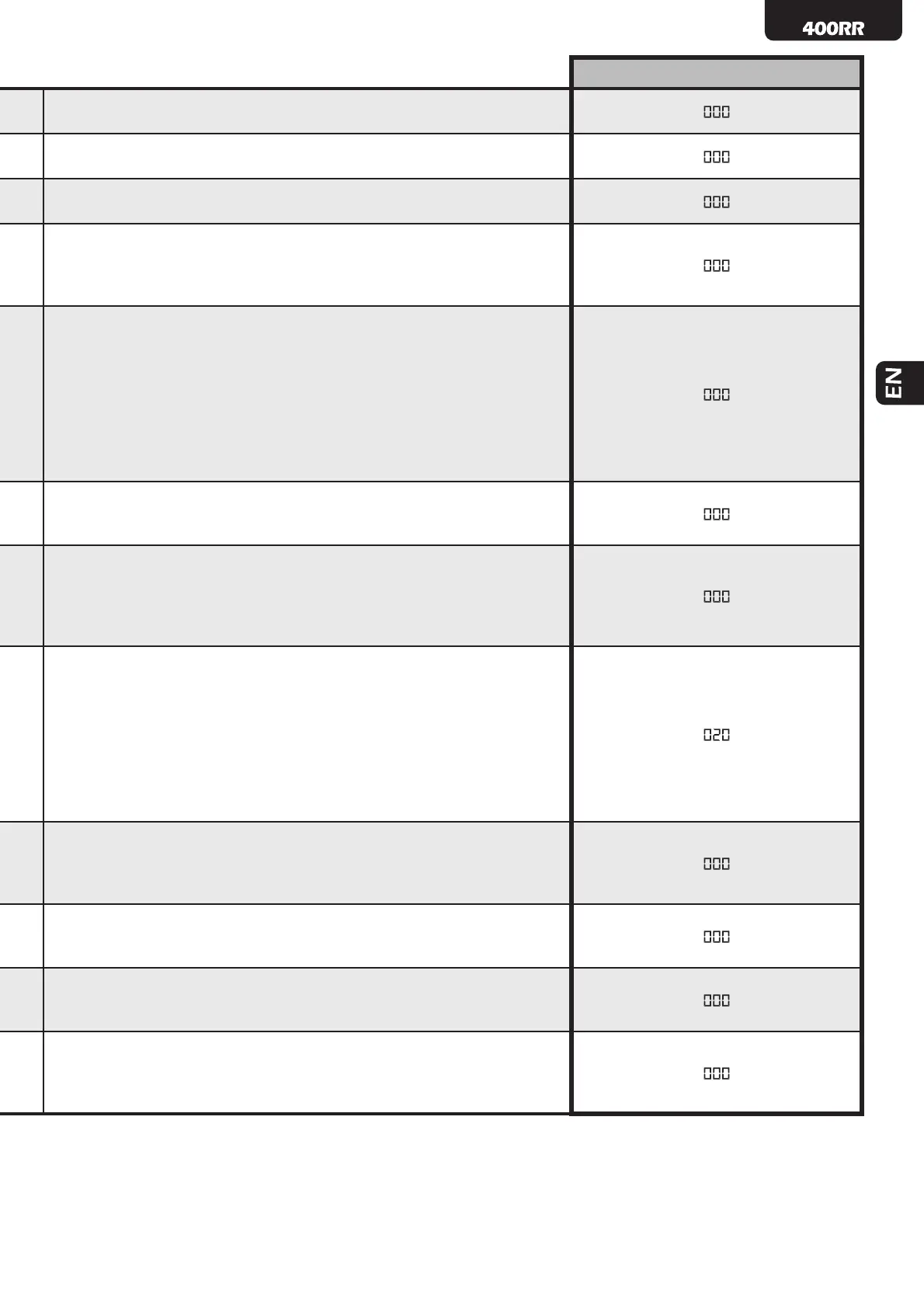 • 001: open gate intermittent warning light