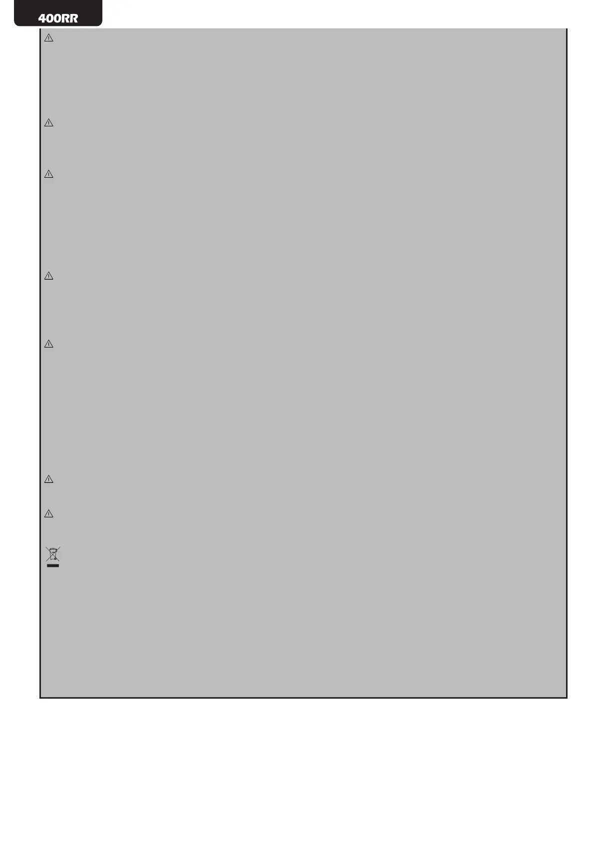 WARNING In compliance with EU Directive 2012/19/EU on waste electrical and