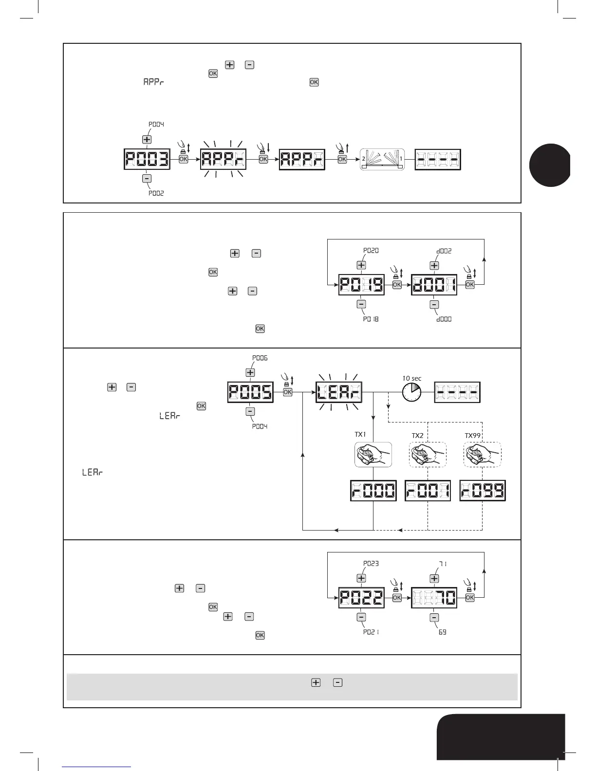 ATTENTION A la fin de la procédure de programmation, appuyez sur ou jusqu’à ce que le display affiche “----“: l’utilisateur