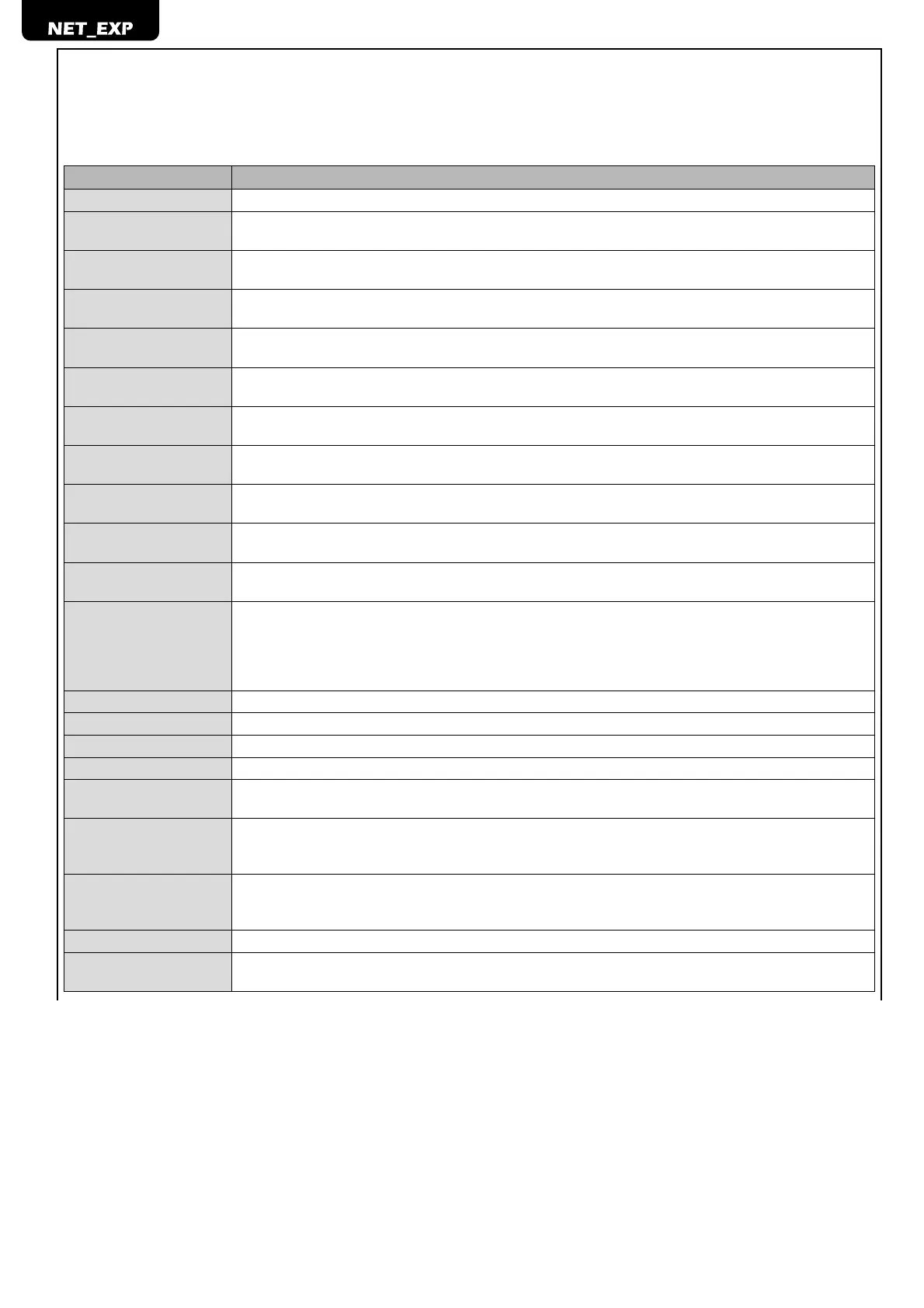 para las salidas presentes en la tarjeta NET_EXP. Hacer referencia también a la tabla de confi guración de parámetros.