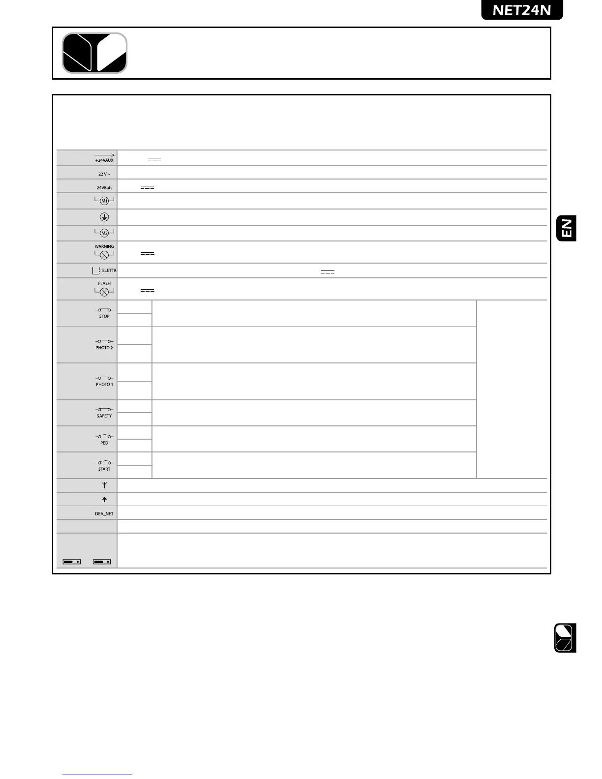 (during opening), prevent the start (gate closed). If unused, short circuit.