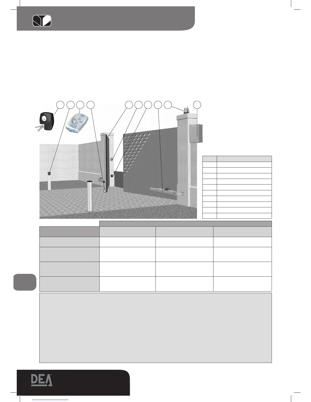 In order to further reduce the risk of impact with the gate wing in the opening area, an extra pair of photocells (C) (recommended