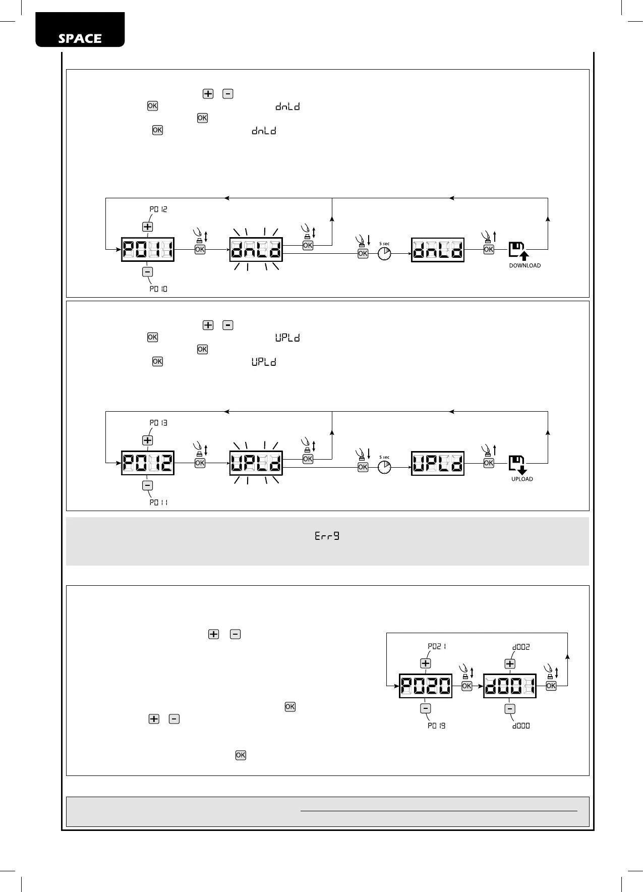 Tutte le impostazioni della centrale (TYPE, parametri, radiocomandi, corsa motori, ecc..) vengono salvate sull’unità di memorizzazio-