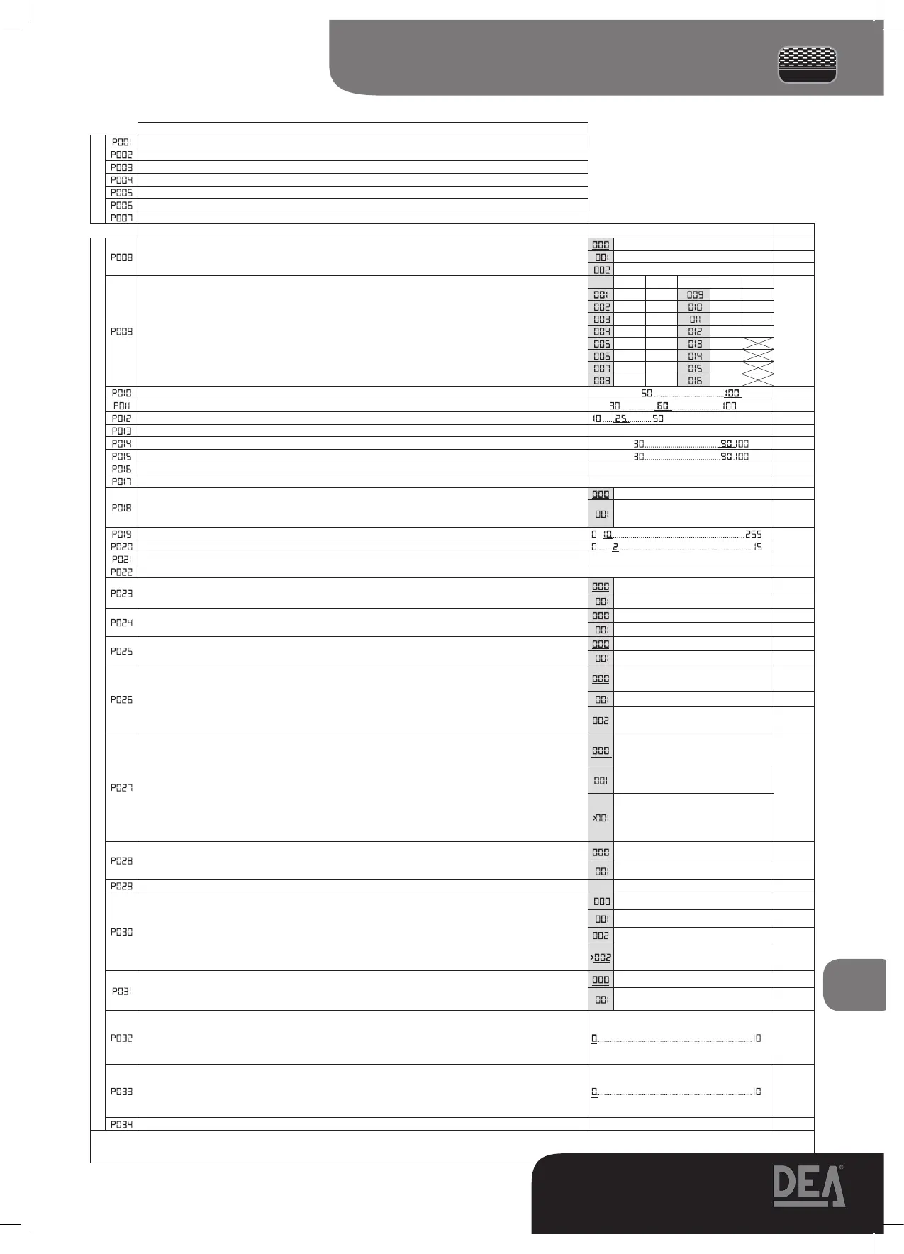 DESCRIPCIÓN DEL PARÁMETRO VALORESPROGRAMABLES