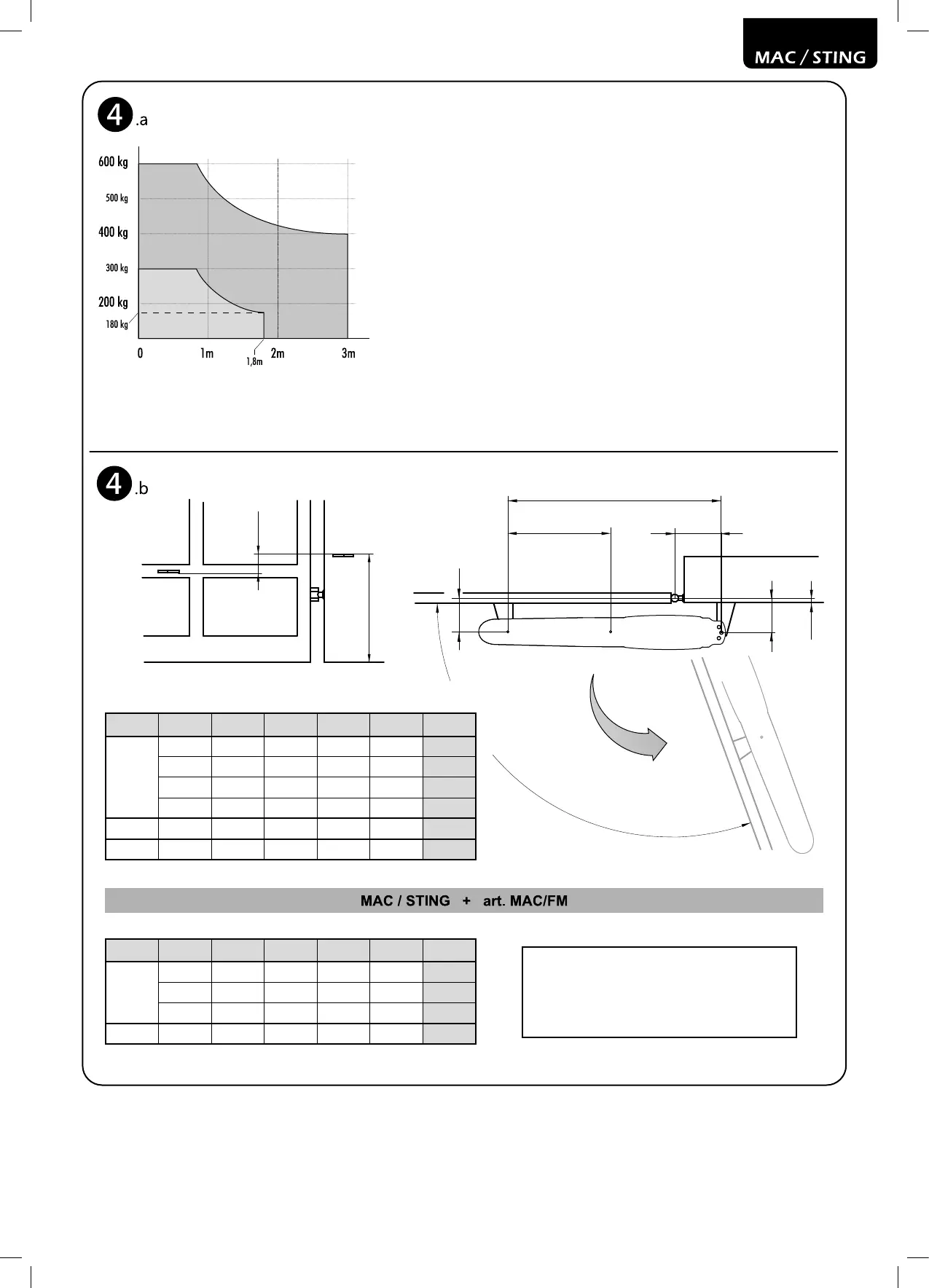 WARNING With not self-locking models, with same leaf length, reduce of 1/3 the door admissible weight