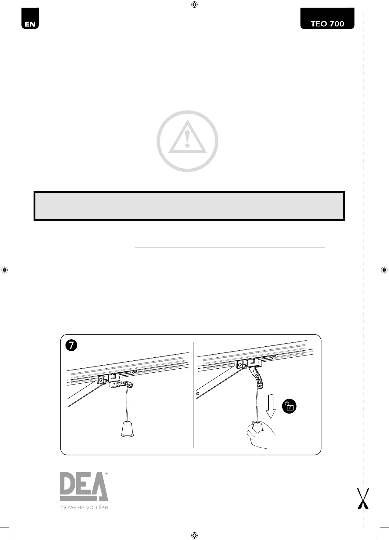 The only operation the user can and must do is to remove any obstacle hindering the door or TEO 700 operator