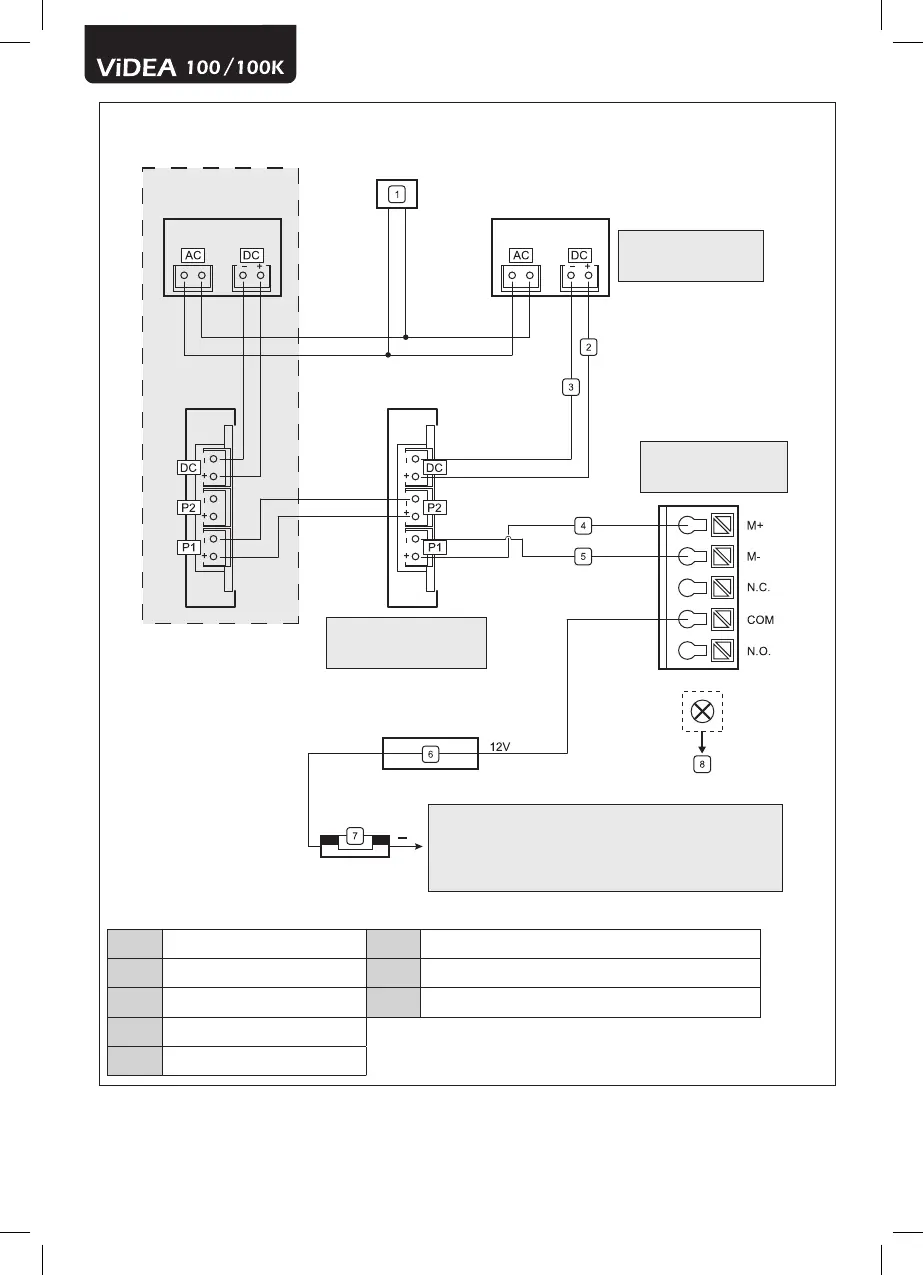 1 Alimentazione 230V ~50Hz 6 Alimentazione 12V elettroserratura (non fornita)