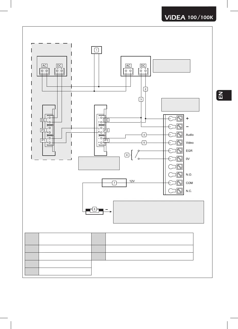 2 Power supply 12V (+) 7 12V electric lock power supply (not supplied)