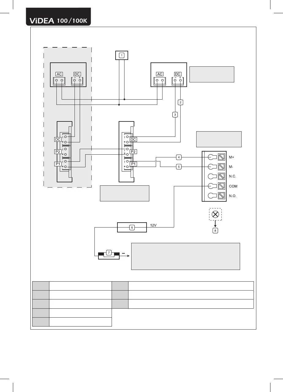 1 Alimentação 230V ~50Hz 6 Alimentação 12V fechadura com sistema elétrico (não fornecido)