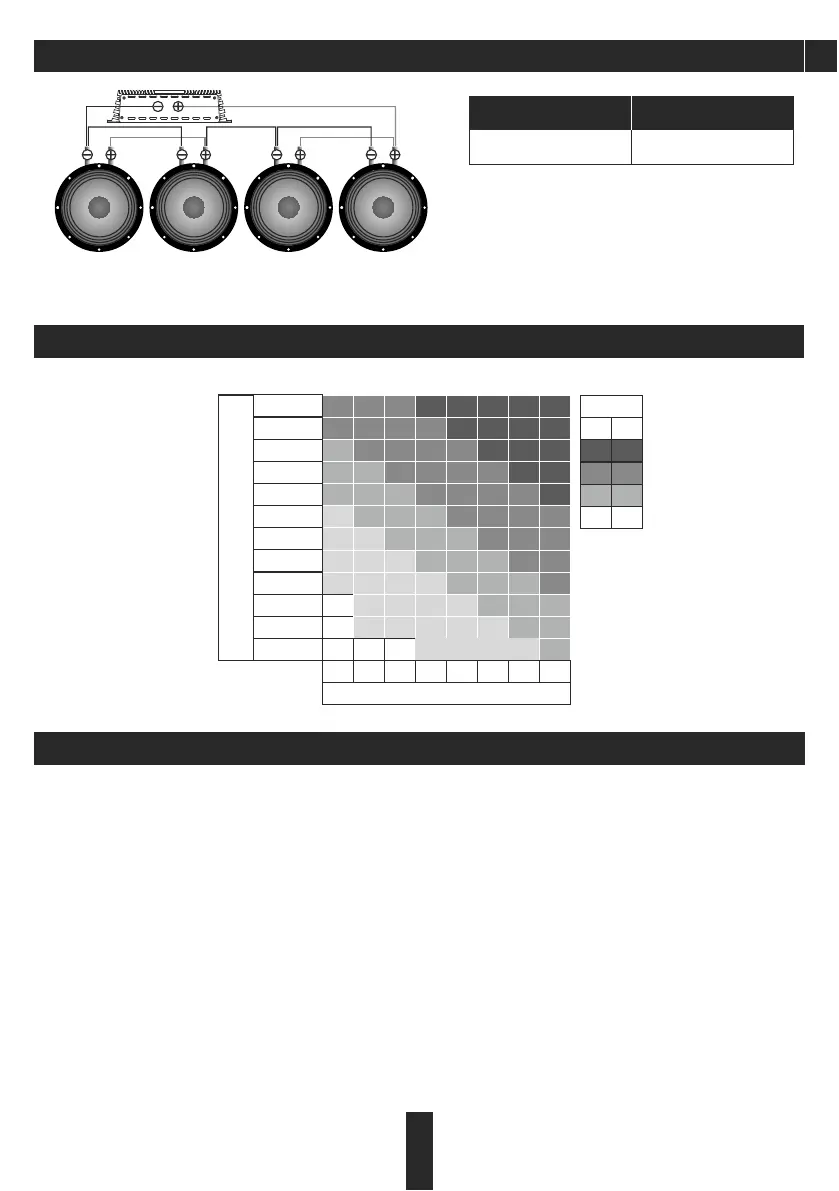 voice coil damage. Recommended settings of the amplifier and HU: Volume of HU should not exceed 80%. The amplifier