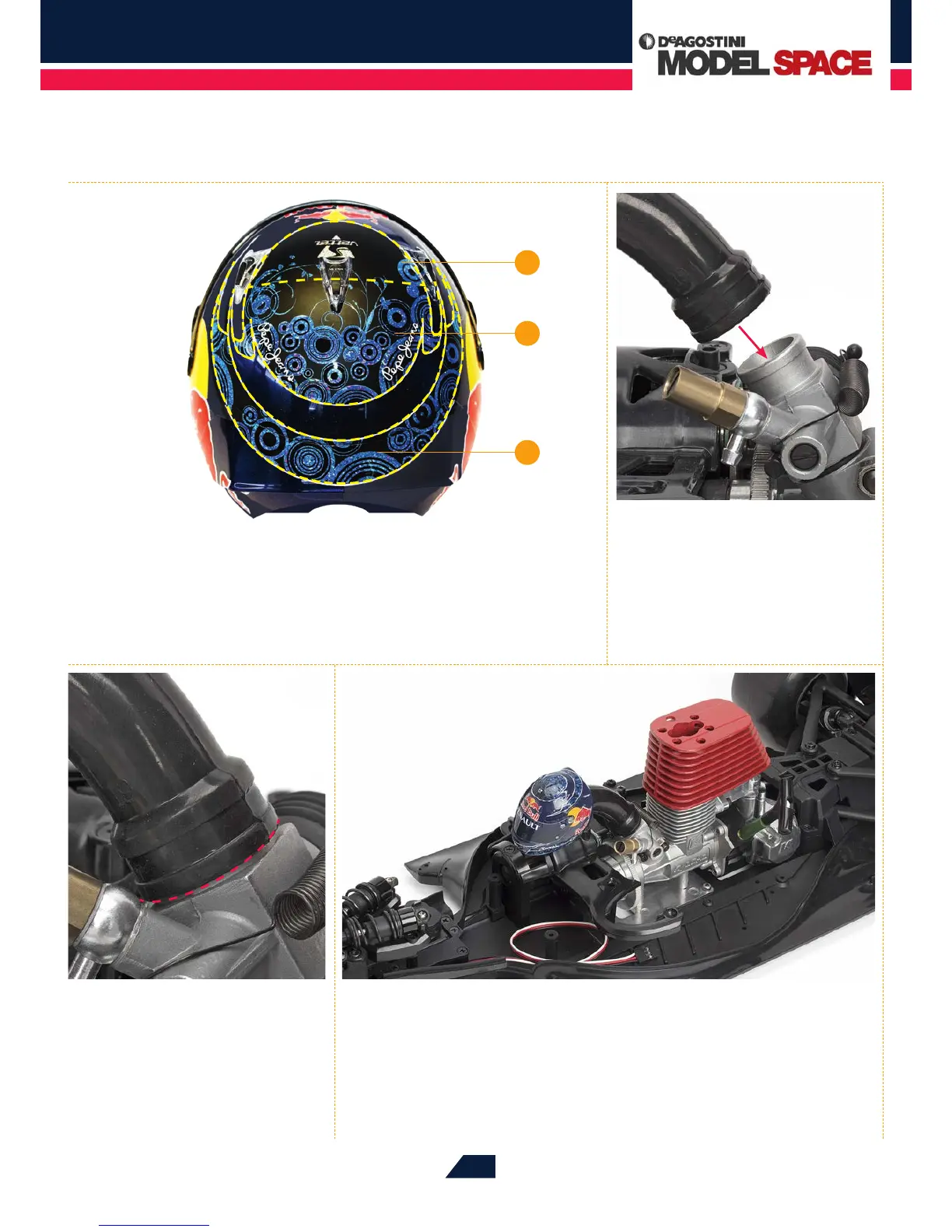Finally, apply stickers 10-12 to the top surface of the helmet cover. Use the yellow